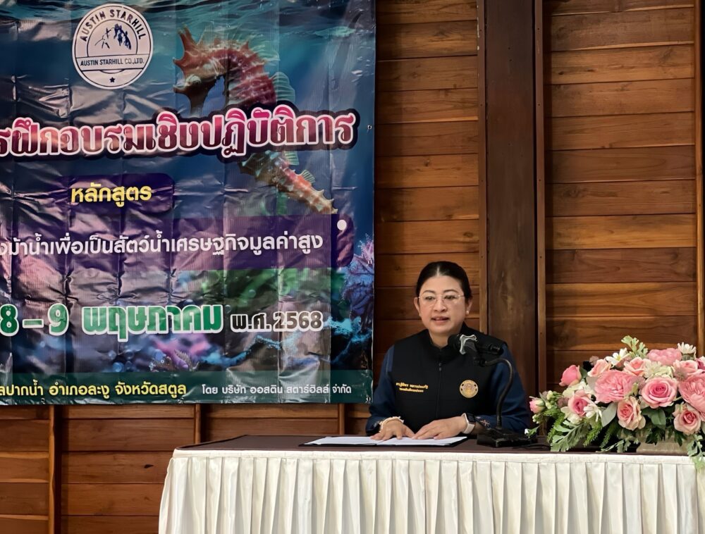 นางฐิติพร หลาวประเสริฐ รองอธิบดีกรมประมง เปิดเผยหลังเป็นประธานเปิดโครงการฝึกอบรมเชิงปฏิบัติการหลักสูตร “การเพาะเลี้ยงม้าน้ำเพื่อเป็นสัตว์น้ำเศรษฐกิจมูลค่าสูง” ซึ่งจัดขึ้นในระหว่างวันที่ 8-9 พฤษภาคม 2568 ณ บารารีสอร์ท และศูนย์วิจัยและพัฒนาประมงทะเลสตูล จังหวัดสตูล ว่า..กรมประมงมีความมุ่งมั่นในการส่งเสริมการเพาะเลี้ยงสัตว์น้ำสำหรับทดแทนการจับจากธรรมชาติ ซึ่งนับวันมีปริมาณลดน้อยลง โดยเฉพาะสัตว์น้ำเศรษฐกิจที่มีมูลค่าสูงเป็นที่ต้องการของผู้บริโภค ตามนโยบายของนายอัครา พรหมเผ่า รัฐมนตรีช่วยว่าการกระทรวงเกษตรและสหกรณ์ และนายบัญชา สุขแก้ว อธิบดีกรมประมง ซึ่งได้สนับสนุนการสร้างความร่วมมือระหว่างภาครัฐและเอกชนเพื่อร่วมกันยกระดับและพัฒนาขีดความสามารถทางการแข่งขันให้กับสินค้าภาคประมงทั้งในและต่างประเทศ พร้อมสร้างความมั่นคงและยั่งยืนในการประกอบอาชีพให้แก่เกษตรกรไทย