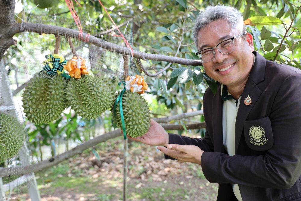 สำหรับการผลิตทุเรียนในปี พ.ศ. 2567 และเก็บผลผลิตในปี พ.ศ. 2568 นี้การให้น้ำ ให้ปุ๋ย แตกต่างไปจากปี พ.ศ. 2566 เนื่องจากสภาพอากาศที่แตกต่างออกไป เช่น มีช่วงแล้งสลับฝนตกตั้งแต่ระยะช่อดอก จำเป็นต้องให้ปุ๋ยที่มี K เป็นระยะทั้งการให้ทางดินและทางใบ