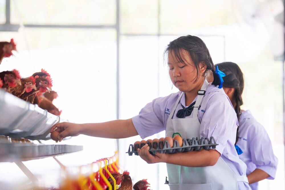 โครงการฯนี้ไม่เพียงช่วยสร้างโภชนาการที่ดีให้กับเด็กๆ ในชนบท ยังส่งเสริมการพัฒนาทักษะอาชีพในโรงเรียน โดยมีหลักสูตรการเลี้ยงไก่ไข่ที่ให้นักเรียนได้เรียนรู้ตั้งแต่การเลี้ยง การจัดการฟาร์ม ไปจนถึงการแปรรูปผลิตภัณฑ์จากไข่ไก่ ซึ่งสามารถนำไปใช้ภายในโรงเรียน ขยายเป็นธุรกิจเสริมรายได้ให้กับโรงเรียนและชุมชน รวมถึงเป็นทักษะอาชีพของเด็กๆต่อไป