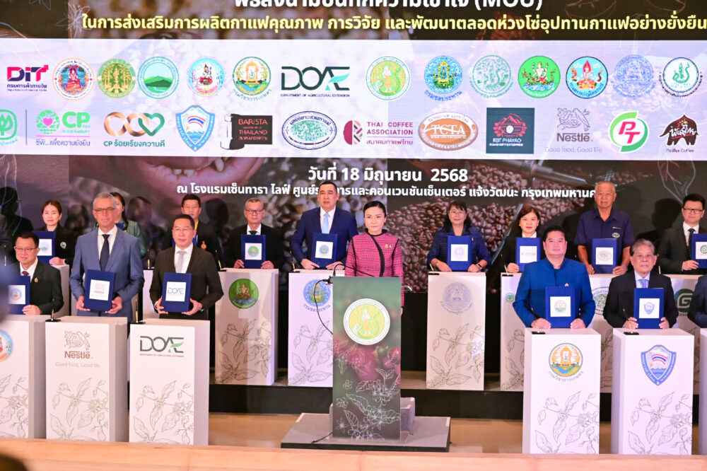 วันที่ 18 มิถุนายน 2568 ศ.ดร.นฤมล ภิญโญสินวัฒน์ รัฐมนตรีว่าการกระทรวงเกษตรและสหกรณ์ เป็นประธานและสักขีพยานในพิธีลงนามบันทึกความเข้าใจ (MOU) ในการส่งเสริมการผลิตกาแฟคุณภาพ การวิจัย และพัฒนาตลอดห่วงโซ่อุปทานกาแฟอย่างยั่งยืน ร่วมกับหน่วยงานภาครัฐและเอกชนกว่า 36 หน่วยงาน ณ โรงแรมเซ็นทารา ไลฟ์ ศูนย์ราชการและคอนเวนชันเซ็นเตอร์ แจ้งวัฒนะ กรุงเทพมหานคร