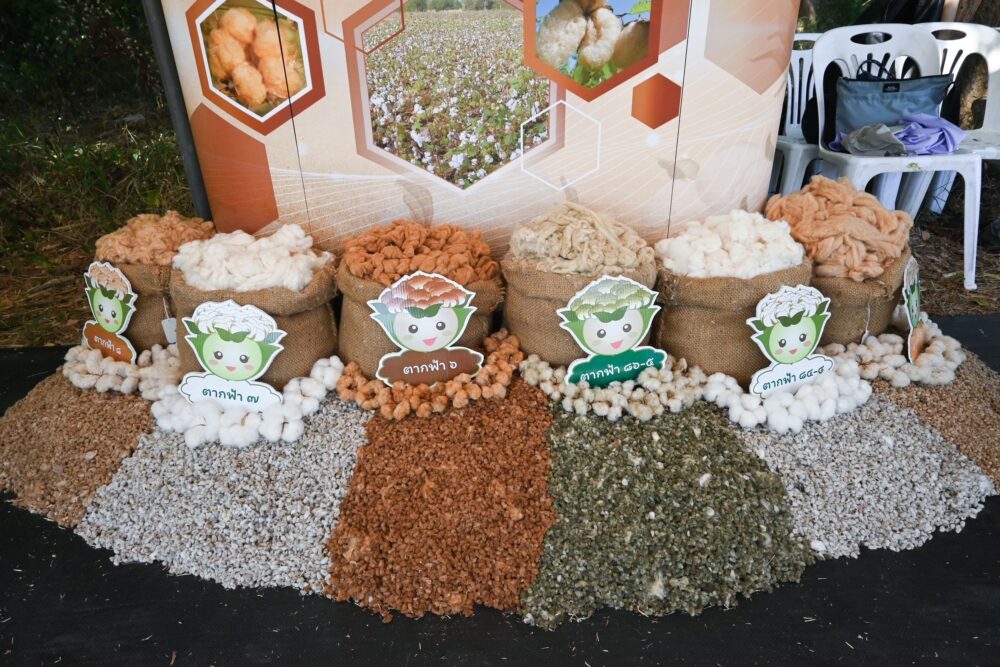 โดยให้นำผลงานวิจัยการผลิตฝ้ ายพันธุ์ดีที่มีเอกลักษณ์ของศู นย์วิจัยพืชไร่นครสวรรค์ ได้แก่ ฝ้ายเส้นใยสีน้ำตาล พันธุ์ตากฟ้า 3 พันธุ์ตากฟ้า 6 และพันธุ์ตากฟ้า 8 ฝ้ายเส้นใยยาวสีขาว พันธุ์ตากฟ้า 2 พันธุ์ตากฟ้า 7 และพันธุ์ตากฟ้า 84-4 ฝ้ายเส้นใยสีเขียว พันธุ์ตากฟ้า 86-5 พร้อมทั้งนำเทคโนโลยีการผลิ ตครามที่ให้ปริมาณและคุณภาพเนื้ อครามสูง ของศูนย์วิจัยและพั ฒนาการเกษตรสกลนคร มาขยายผลต่อยอดในพื้นที่เพื่ อให้เกษตรกรนำไปปลูกและแปรรู ปเป็นผลิตภัณฑ์สินค้าเกษตรอัตลั กษณ์