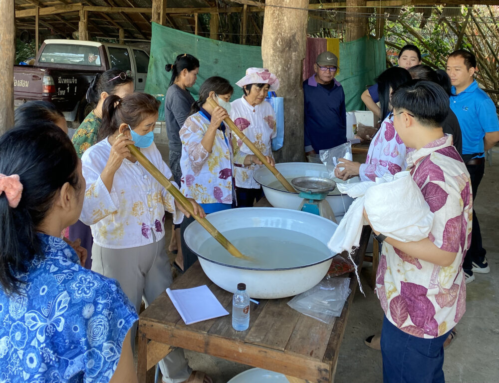พร้อมทั้งพัฒนาผลิตภัณฑ์ผ้าไหมอีรี่พิมพ์ลายใบไม้จากธรรมชาติที่สะท้อนอัตลักษณ์ของชุมชนตำบลพระธาตุขิงแกง โดยใช้เส้นไหมอีรี่ ร่วมกับการย้อมสีธรรมชาติและพิมพ์ลวดลายจากใบไม้ในท้องถิ่น เป็นผลิตภัณฑ์ผ้าไหมอีรี Eco Print ภายใต้แบรนด์ “Yakzaa – ยักษ์ษา” ซึ่งได้รับความสนใจจากตลาดทั้งในและต่างประเทศ ถือเป็นต้นแบบการพัฒนาเศรษฐกิจฐานรากด้วยทุนวัฒนธรรมและทรัพยากรในท้องถิ่นอย่างแท้จริง
