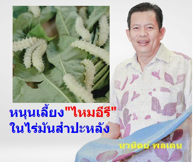 กรมหม่อนไหม เร่งเดินหน้าผลักดันการเลี้ยงไหมอีรี ใช้ใบมันสำปะหลังเป็นอาหาร หวังให้เป็นอาชีพเสริมที่มั่นคง พัฒนาผลิตภัณฑ์ท้องถิ่น สร้างรายได้ เพิ่มโอกาสส่งออกอย่างยั่งยืน นำร่องที่วิสาหกิจชุมชนกลุ่มเกษตรกรโครงการปฏิรูปที่ดินพื้นที่เอกชน ต.พระธาตุขิงแกง อ.จุน จ.พะเยา ใช้พื้นที่แปลงรวมปลูกมันสำปะหลัง 30 ไร่