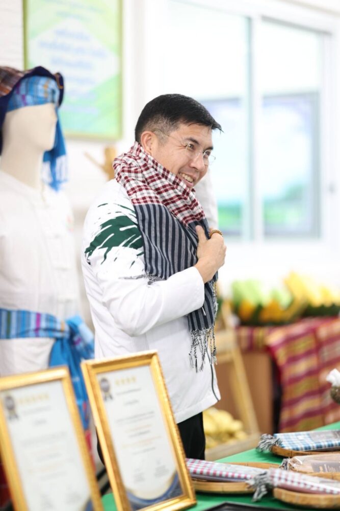 นอกจากนี้ ผู้จัดการ ธ.ก.ส. ยังได้พบปะและพูดคุยกับเกษตรกรลูกค้าของธนาคาร เพื่อให้คำแนะนำและข้อเสนอแนะเกี่ยวกับพัฒนาคุณภาพสินค้าให้ตรงตามความต้องการของตลาด สอดคล้องกับแนวทางการเป็นแกนกลางการเกษตร (Essence of Agriculture) ด้านการเพิ่มมูลค่า และการเพิ่มช่องทางการตลาด โดยมีผลิตภัณฑ์ที่น่าสนใจ อาทิ ผ้าสะไบแดงลายขิด โดยกลุ่มทอผ้าบ้านหนองเอาะ อ.ตระการพืชผล ผ้าทอมือที่มีอัตลักษณ์ท้องถิ่นด้วยการทอให้เกิดลวดลายโดยไม่ต้องปักหรือเย็บ สำหรับใช้พาดไหล่หรือคล้องคอ
