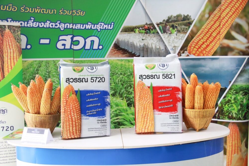 -ข้าวโพดสุวรรณ 5720/5821 – ข้าวโพดเลี้ยงสัตว์สายพันธุ์ใหม่ทางเลือกแทนนาปรัง เพิ่มรายได้ 1,000 –2,000 บาท/ไร่ ปัจจุบันผลิตเมล็ดพันธุ์สุวรรณ 5720 ขายให้แก่เกษตรกรปีละประมาณ 20 ตัน สร้างรายได้ให้เกษตรกรประมาณ 78 ล้านบาท/ปี