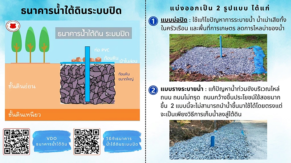 ผลลัพธ์ที่เกิดขึ้น ไม่ใช่แค่น้ำที่เพียงพอ แต่ยังช่วยลดต้นทุนค่าน้ำได้ถึงปีละ 1 ล้านบาท แก้ปัญหาน้ำท่วมขัง น้ำเน่าเสีย เพิ่มความชุ่มชื้นในดิน ยกระดับสุขอนามัยในชุมชน จนทำให้หมู่บ้านฯ แห่งนี้กลายเป็น “ศูนย์เรียนรู้ธนาคารน้ำใต้ดิน” ที่หลายชุมชนเข้ามาศึกษาและนำไปปรับใช้