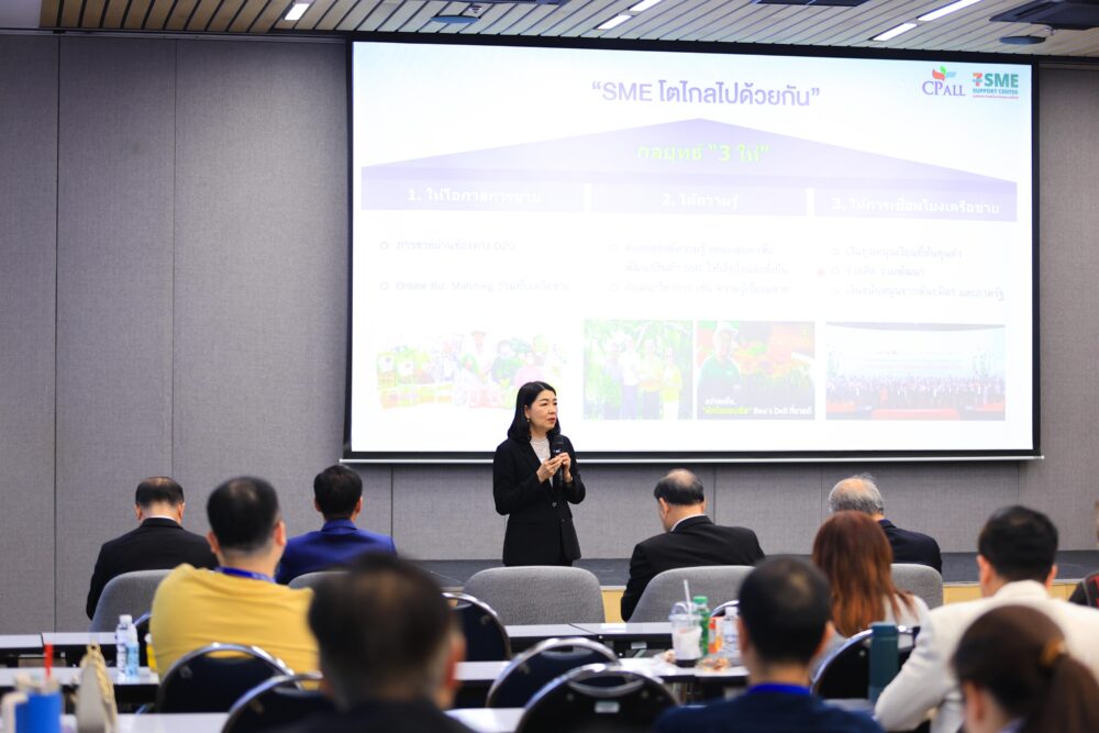 นอกจากนี้ ผู้เข้าร่วมกิจกรรมยังได้รับฟังการบรรยายเชิงลึกในหัวข้อ “การปรับตัวของ SME กับความท้าทายของธุรกิจยุคใหม่” ซึ่งสะท้อนให้เห็นว่า SME ต้องเผชิญกับการแข่งขันที่รุนแรง เทคโนโลยีที่เปลี่ยนแปลงรวดเร็ว และพฤติกรรมผู้บริโภคที่ไม่แน่นอน จึงจำเป็นต้องพัฒนาอย่างต่อเนื่อง พร้อมรับคำแนะนำตามแนวทาง “การร่วมสร้างร่วมพัฒนา SME กับศูนย์เซเว่น อีเลฟเว่น สนับสนุน SME” เพื่อเป็นแนวทางในการดำเนินธุรกิจ