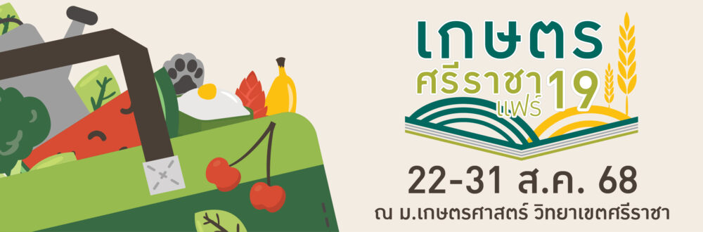 2. การจัดงานเกษตรศรีราชาแฟร์ ครั้งที่ 19 กำหนดจัดขึ้นระหว่างวันที่ 22–31 สิงหาคม 2568 ตั้งแต่เวลา 10.00–22.00 น. ภายในงานรวบรวมร้านค้าจำหน่ายสินค้ามากมาย ทั้งของกิน ของใช้ ต้นไม้ ผลิตผลทางการเกษตร สินค้าจากนิสิต ชุมชน และเครื่องมือการเกษตร พร้อมกิจกรรมพิเศษภายในงานอาทิ การฉีดวัคซีนสัตว์เลี้ยง การอบรมบริการวิชาการ เป็นต้น ติดตามข้อมูลได้ที่ https://www.facebook.com/KUSRCFAIR