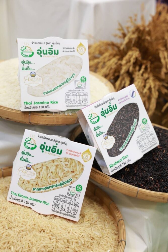 โดย ธ.ก.ส. สนับสนุนการนำข้าวหอมมะลิ GI ทุ่งกุลาร้องไห้ไปสู่ข้าวพร้อมทานภายใต้แบรนด์ “ข้าวอุ่นอิ่ม” ที่ผลิตด้วยนวัตกรรมที่ทันสมัย สามารถเก็บในอุณหภูมิห้องได้นานถึง 18 เดือน พร้อมทานทันทีเมื่อเปิดฝา หรืออุ่นเพียง 60 วินาที จากการดำเนินการตลอดปี 2567 ข้าวอุ่นอิ่มได้พัฒนาเป็นผลิตภัณฑ์พร้อมทาน 3 ประเภท ได้แก่ ข้าวหอมมะลิ ข้าวกล้อง และข้าวไรซ์เบอร์รี่ พร้อมเพิ่มปริมาณการรับซื้อข้าวเปลือกจากสมาชิกเกษตรกรได้มากขึ้นถึง 1,513 ตันเมื่อเทียบกับปีก่อน และยังสามารถยกระดับมูลค่าข้าว จากข้าวสาร A-Rice ราคา ตันละ 50,000 บาท กลายเป็นข้าวพร้อมทานที่ขายได้สูงถึงเกือบตันละ 300,000 บาท