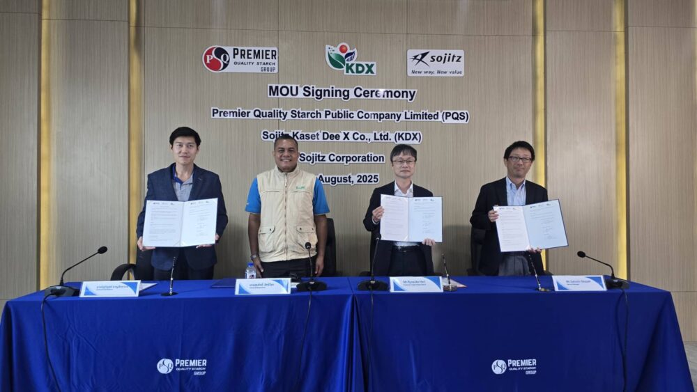 PQS ผู้ผลิตและจำหน่ายแป้งมันสำปะหลังชั้นนำของไทย ประกาศความร่วมมือเชิงกลยุทธ์กับ บริษัท โซจิทสึ เกษตร ดี เอ็กซ์ จำกัด ( KDX ) ผู้นำด้านการสนับสนุนเกษตรไทย และบริษัทแม่”โซจิทสึ คอร์ปอเรชั่น” กลุ่มบริษัทการค้าระหว่างประเทศชั้นนำจากประเทศญี่ปุ่น เดินหน้าโครงการ “Low Carbon Starch” อย่างเต็มรูปแบบ มุ่งสร้างมาตรฐานใหม่ให้แก่อุตสาหกรรมมันสำปะหลังไทย ด้วยการผลิตแป้งมันสำปะหลังคาร์บอนต่ำที่สามารถตรวจสอบย้อนกลับแหล่งที่มาได้ (Traceable Sourcing) ตลอดห่วงโซ่การผลิต ตอบโจทย์ตลาดโลกที่ให้ความสำคัญกับความยั่งยืนและ ESG
