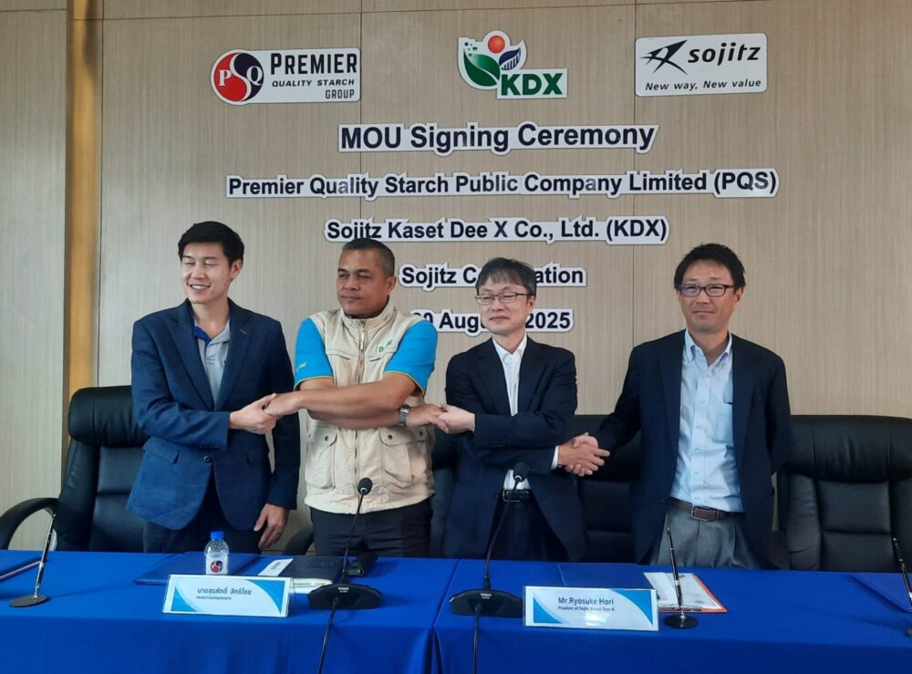 ทั้งการลงนาม บันทึกข้อตกลงความร่วมมือ หรือ MOU โครงการ “Low Carbon Cassava”ระหว่าง บริษัท โซจิทสึ เกษตร ดี เอ็กซ์ จำกัด (KDX) บริษัท โซจิทสึ คอร์ปอเรชัน จากประเทศญี่ปุ่นและและ บริษัท พรีเมียร์ควอลิตี้สตาร์ช จำกัด (มหาชน) (PQS)จัดขึ้นที่ห้องประชุมบริษัท พรีเมียร์ควอลิตี้สตาร์ช จำกัด (มหาชน) (PQS) อ.เมือง จ.มุกดาหาร เมื่อวันที่ 20 สิงหาคม 2568