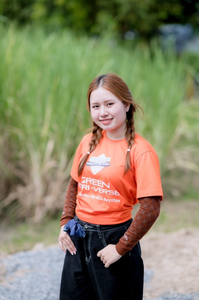 เมื่อได้เข้าร่วม “KUBOTA Smart Farmer Camp 2025” ตนได้สัมผัสเทคโนโลยีเกษตรสมัยใหม่เป็นครั้งแรก ตั้งแต่การขับรถดำนาติด GPS ที่ช่วยวางแผนการปลูกได้แม่นยำ การทดลองพ่นสารด้วยโดรนอัจฉริยะ ไปจนถึงการเรียนรู้ระบบการผลิตที่ลดการใช้สารเคมี “ตอนขับรถดำนา GPS ครั้งแรก เหมือนได้เห็นอนาคตของเกษตรที่ง่ายและแม่นยำกว่าที่เคยคิดไว้เยอะมาก รู้สึกว่าคนรุ่นใหม่ถ้าได้ใช้เทคโนโลยีพวกนี้ จะทำให้เกษตรไม่ใช่งานหนักแบบเดิม แต่เป็นงานที่วางแผนได้ มีประสิทธิภาพ และต่อยอดธุรกิจได้หลากหลาย”องุ่นเล่าเสริม