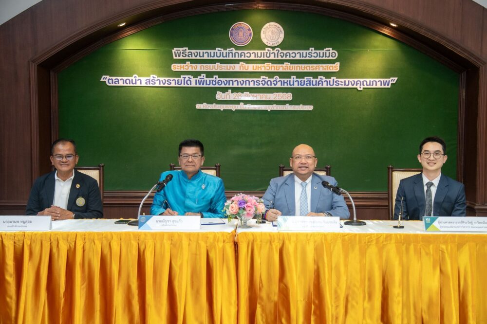 กรมประมง จับมือ ม.เกษตรฯ เปิดเกมรุกยกระดับสินค้าประมง ลงนาม MOU ว่าด้วย “ตลาดนำ สร้างรายได้ เพิ่มช่องทางการจำหน่ายสินค้าประมงคุณภาพ” หวังขยายโอกาสทางการตลาด ด้วยกลยุทธ์การขายยุคใหม่