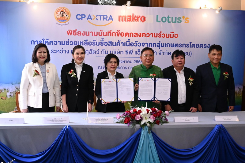 กรมปศุสัตว์จัดพิธีลงนาม MOU กับบริษัท ซีพี แอ็กซ์ตร้าฯ เพื่อรับซื้อเนื้อโคคุณภาพจากเกษตรกรโดยตรง เพื่อนำไปจำหน่ายในโลตัส หวังสนับสนุนช่องทางการตลาดให้เกษตรกรผู้เลี้ยงโคเนื้อสามารถจำหน่ายสินค้าได้ในราคาที่เป็นธรรม ยกระดับคุณภาพสินค้า สร้างความเชื่อมั่นให้ผู้บริโภค และขับเคลื่อนเศรษฐกิจฐานรากอย่างยั่งยืน