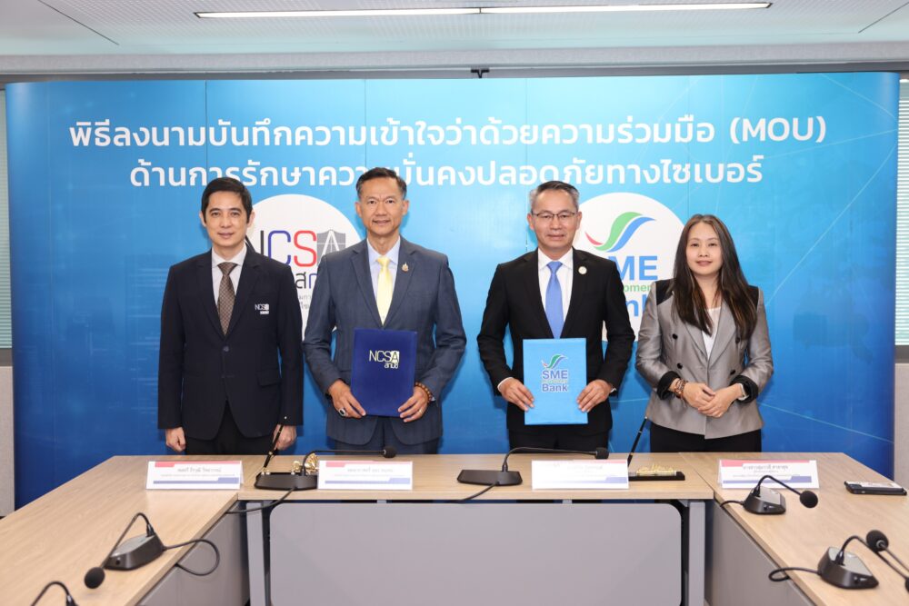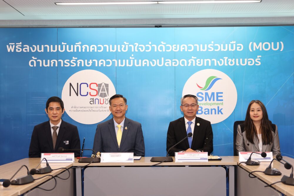 นายพิชิต มิทราวงศ์ กรรมการผู้จัดการ ธนาคารพัฒนาวิสาหกิจขนาดกลางและขนาดย่อมแห่งประเทศไทย (ธพว.) หรือ SME D Bank และ พลอากาศตรี อมร ชมเชย เลขาธิการคณะกรรมการการรักษาความมั่นคงปลอดภัยไซเบอร์แห่งชาติ (สกมช.) ร่วมลงนามบันทึกความเข้าใจ (MOU) ว่าด้วยความร่วมมือด้านการรักษาความมั่นคงปลอดภัยไซเบอร์ เพื่อเสริมสร้างความมั่นคงปลอดภัยทางดิจิทัล คุ้มครองธุรกิจไทยและสร้างความเชื่อมั่นให้แก่สังคมดิจิทัล