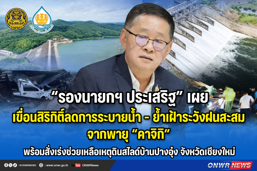 รองนายกฯ “ประเสริฐ จันทรรวงทอง” เผยเขื่อนสิริกิติ์ลดการระบายน้ำแล้ว แต่ต้องเฝ้าระวังฝนสะสมจากพายุ “คาจิกิ” ย่างใกล้ชิดในช่วง 1 – 2 วันนี้ พร้อมสั่งเร่งช่วยเหลือเหตุดิ นสไลด์บ้านปางอุ๋ง จังหวัดเชียงใหม่