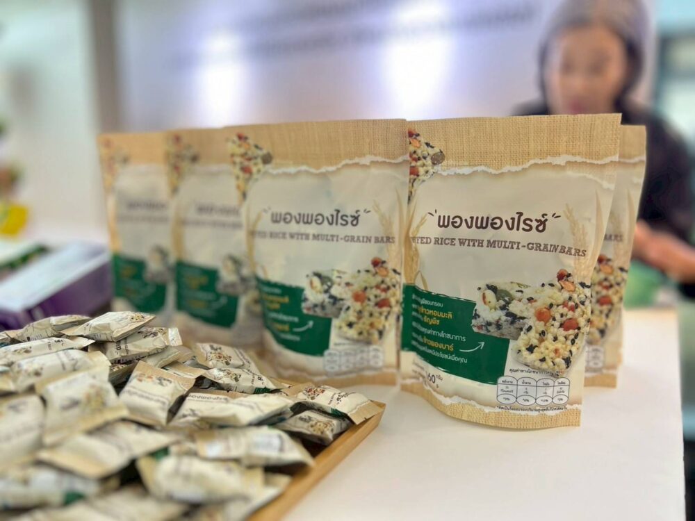 ไม่เพียงแต่การผลิตข้าวคุณภาพแล้ว แต่กลุ่มฯ ยังต่อยอดแปรรูปเป็นผลิตภัณฑ์ข้าวพองธัญพืชอบกรอบจากจมูกข้าวหอมมะลิ “พองพองไรซ์” (Puffed Rice with Multi-Grain Bars) ที่ช่วยสร้างรายได้ และเพิ่มมูลค่าให้กับข้าวไทย ตลอดจนทำให้ชุมชนมีความภาคภูมิใจในผลิตภัณฑ์ที่เกิดจากฝีมือคนท้องถิ่น ความสำเร็จของกลุ่มวิสาหกิจชุมชนทำนาห้วยตาดข่า จึงสะท้อนถึงพลังของการรวมกลุ่มเกษตรกรที่เข้มแข็ง และศักยภาพที่แข็งแกร่งพร้อมปรับตัวสู่โลกเกษตรยุคใหม่ในอนาคต