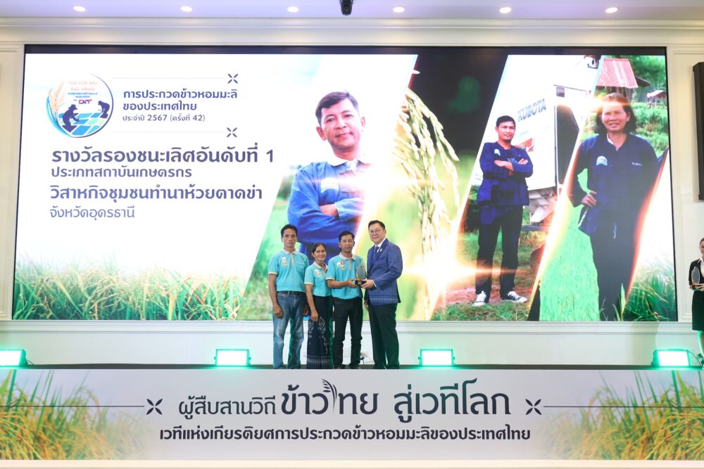 พร้อมเชื่อมโยงการตลาด สร้างมูลค่าเพิ่ม ส่งเสริมการกระจายรายได้สู่ชุมชนและเปิดช่องทางจำหน่ายอย่างยั่งยืนให้กับชาวนาไทย โดยมี อุดรธานี โดย นายฉัตรเชาวสิโรตม์ ยอดคีรี ประธานกลุ่มวิสาหกิจชุมชนทำนาห้วยตาดข่า จังหวัดอุดรธานี นำทีมสมาชิกเกษตรกร เข้ารับรางวัลจาก นายจตุพร บุรุษพัฒน์ รัฐมนตรีว่าการกระทรวงพาณิชย์ ประธานในพิธี