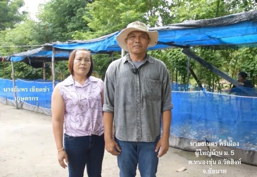 ด้านนายธเนตร ศรีเมือง ผู้ใหญ่บ้านหมู่ที่ 5 ตำบลหนองขุ่น อำเภอวัดสิงห์ จังหวัดชัยนาท ให้ข้อมูลว่า เดิมชาวบ้านในพื้นที่ประกอบอาชีพเกษตรกรรม ทำนา ทำไร่มันสำปะหลัง และไร่อ้อยเป็นหลัก ไม่มีรายได้เสริมอย่างอื่น จึงทำให้บางรายประสบปัญหาภาระหนี้สิน เจ้าหน้าที่กรมประมงจึงได้เข้ามาให้คำแนะนำแก่เกษตรกรที่สนใจเข้าร่วมโครงการส่งเสริมอาชีพประมง เพื่อฟื้นฟูและพัฒนาศักยภาพในช่วงพักชำระหนี้ด้วยการเลี้ยงกบนา เพื่อเป็นรายได้เสริม โดยได้มอบปัจจัยการเลี้ยงต่าง ๆ เช่น ลูกพันธุ์กบ กระชัง อาหารสำหรับเลี้ยง ชุดวิเคราะห์คุณภาพน้ำและแผ่นยางรองพื้น