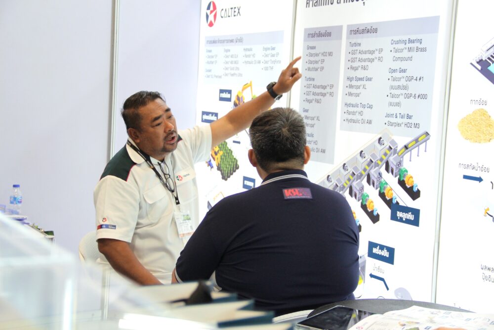 การเข้าร่วมงาน Sugarex Thailand 2025 ได้รับการตอบรับเป็นอย่างดีจากผู้เยี่ยมชม ทั้งในส่วนของผู้ประกอบการโรงงานน้ำตาล เกษตรกรผู้ปลูกอ้อย วิศวกร และผู้ใช้งานเครื่องจักรกลหนัก โดยบูธน้ำมันเครื่องคาลเท็กซ์ในปีนี้มาในธีม “Caltex Business: Getting Closer to your business พันธมิตรใกล้ชิดธุรกิจคุณ” พร้อมไฮไลท์ผลิตภัณฑ์เฉพาะทางที่เป็นตัวช่วยสำคัญสำหรับอุตสาหกรรมน้ำตาลไทย อาทิ น้ำมันหล่อลื่นคาลเท็กซ์ เดโล่ สำหรับเครื่องจักรเก็บเกี่ยวอ้อย รถบรรทุก และน้ำมันหล่อลื่นอุตสาหกรรมพิเศษไม่ว่าจะเป็น น้ำมันไฮดรอลิกแรนโด้ น้ำมันเกียร์เมโรป้า น้ำมันเทอร์ไบน์จีเอสที แอดแวนเทจ รวมถึงจาระบีพิเศษ อย่าง Talcor™ Mill Brass Compound ที่มีคุณสมบัติพิเศษไม่กัดกร่อนโลหะผสมทองแดง รับแรงโหลดสูง ยึดเกาะได้ดี ทนต่อการปนเปื้อนและการชะล้างของน้ำอ้อย ออกแบบสำหรับแบริ่งลูกหีบในโรงงานน้ำตาลโดยเฉพาะ