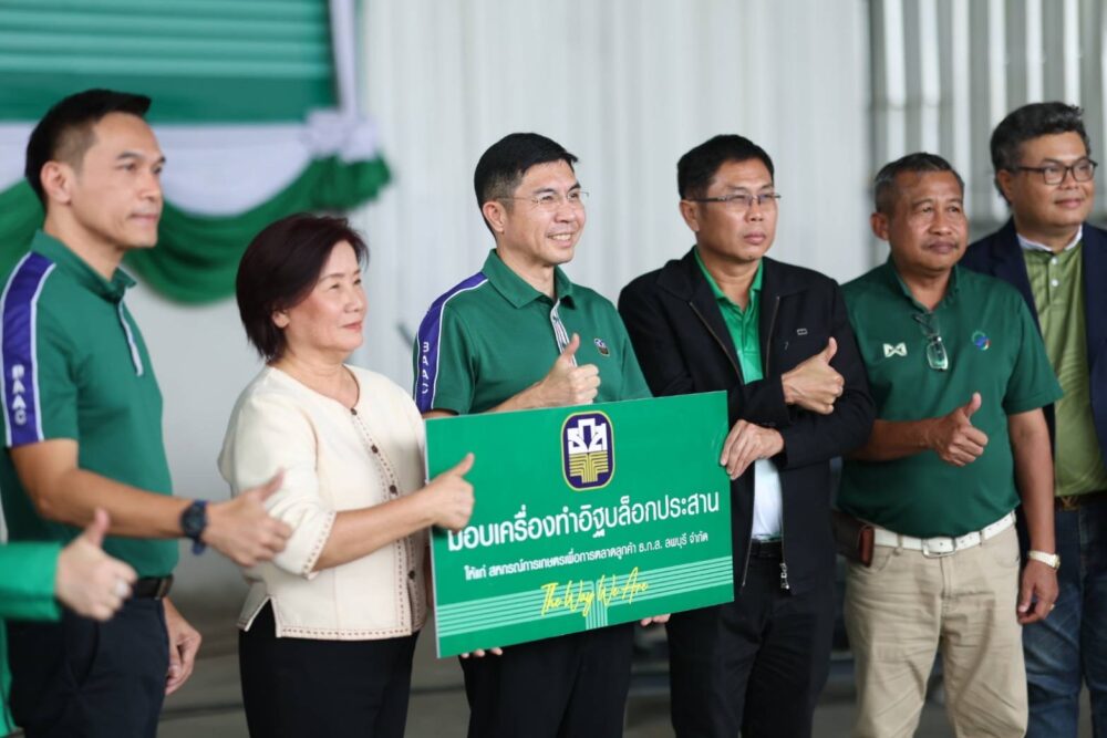 รวมถึงเป็นการช่วยฟื้นฟูระบบนิเวศอย่างยั่งยืน โดยร่วมกับสหกรณ์การเกษตรเพื่อการตลาดลูกค้า ธ.ก.ส. ลพบุรี จำกัด (สกต.ลพบุรี) นำร่องโครงการดังกล่าว ซึ่ง ธ.ก.ส. ได้ส่งมอบเครื่องจักรทำอิฐบล็อกและอุปกรณ์ที่เกี่ยวข้องให้ สกต. ลพบุรี ใช้เป็นต้นแบบในการแปรรูปวัสดุเหลือใช้ทางการเกษตรและมุ่งหวังให้สถาบันเกษตรกรและสหกรณ์การเกษตรเพื่อการตลาดลูกค้า ธ.ก.ส. (สกต.) แห่งอื่น ๆ สามารถพัฒนาผลิตภัณฑ์ต้นแบบ (Best Product) ประเภทอื่น ๆ เพิ่มเติม เพื่อสร้างรายได้เสริม เพิ่มขีดความสามารถในการแข่งขัน และนำไปสู่การขับเคลื่อนเศรษฐกิจระดับชุมชนได้อย่างยั่งยืน