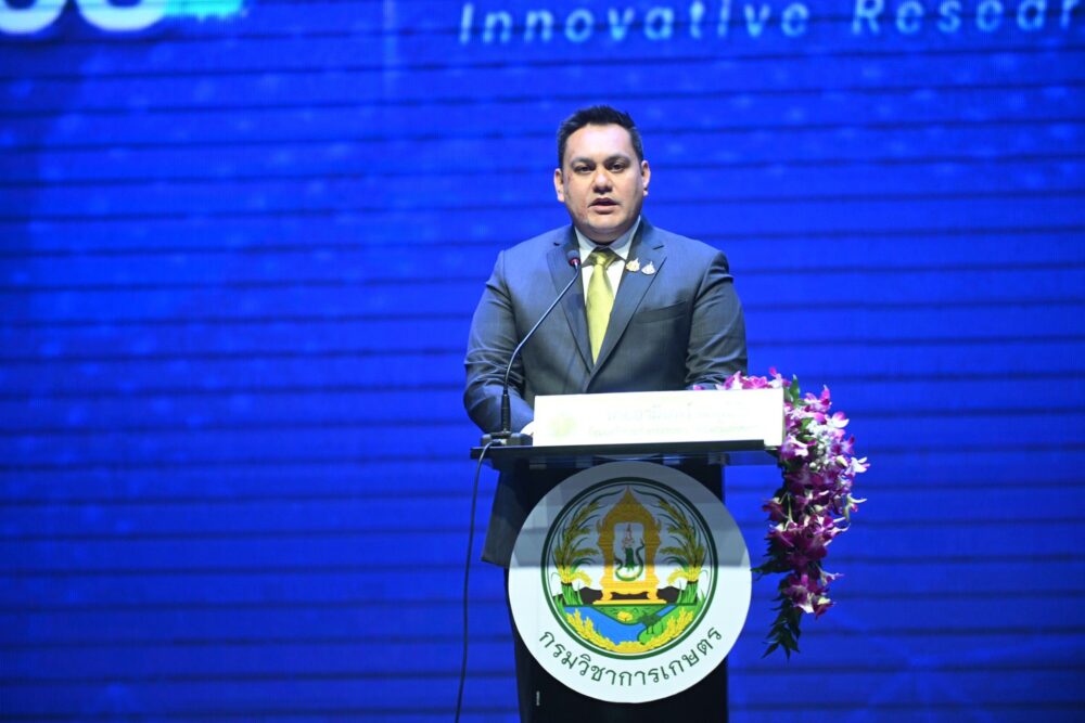 นายอามินทร์ มะยูโซ๊ะ รัฐมนตรีช่วยว่าการกระทรวงเกษตรและสหกรณ์ เป็นประธานพิธีเปิดงานแถลงผลงานกรมวิชาการเกษตร ประจำปีงบประมาณ 2568 ภายใต้แนวคิด “นวัตกรรมงานวิจัย สร้างโอกาสให้ภาคเกษตรไทยอย่างยั่งยืน” Innovative Research for Sustainable Thai Agriculture ที่จัดขึ้นระหว่างวันที่ 28 – 30 กันยายน 2568 โดยมี นายรพีภัทร์ จันทรศรีวงศ์ อธิบดีกรมวิชาการเกษตร ผู้บริหารกรมวิชาการเกษตร ที่ปรึกษา ผู้เชี่ยวชาญ นักวิชาการ เจ้าหน้าที่ ทั้งภายในและภายนอกกรมวิชาการเกษตร รวมถึงเกษตรกรและผู้สนใจ เข้าร่วม ณ ห้องประชุม Tradition Hall สวนนงนุช พัทยา จังหวัดชลบุรี