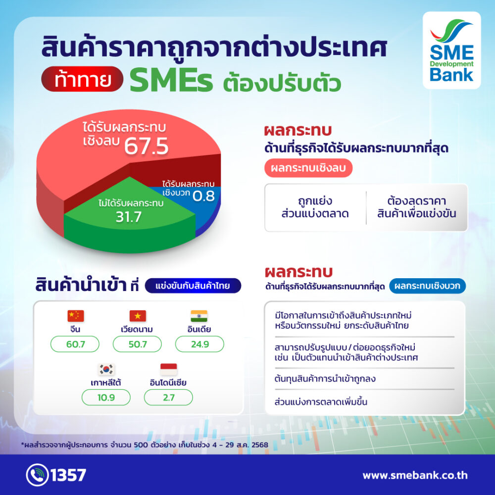 SME D Bank เผยดัชนีเชื่อมั่นเอสเอ็มอี คาด Q4/68 ขยายตัว อานิสงส์นโยบายรัฐกระตุ้นเศรษฐกิจ-กำลังซื้อนักท่องเที่ยวช่วง ไฮซีซั่น