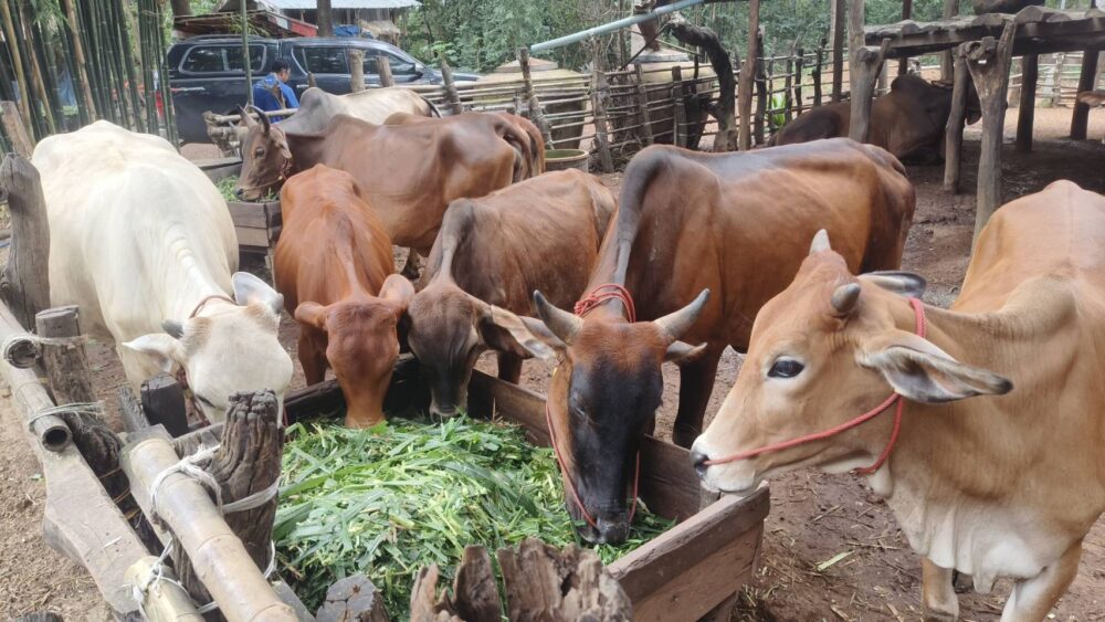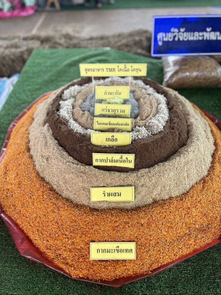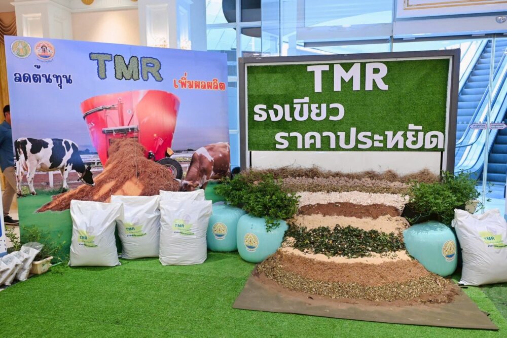 1.โครงการอาหารสัตว์ TMR (Total Mixed Ration) ส่งเสริมการผลิตอาหารผสมสำเร็จรูปสำหรับโคเนื้อและโคนม โดยนำวัสดุเหลือใช้ทางการเกษตร เช่น กากปาล์มน้ำมัน ใบกระถินแห้ง ใบมันสำปะหลังหมัก กากเบียร์ กากมัน กากมะเขือเทศ และเปลือกสับปะรด มาจัดสัดส่วนตามชนิดและระยะการให้ผลผลิตของสัตว์ เป็นการให้อาหารแบบแม่นยำ ช่วยลดต้นทุนได้อย่างเป็นรูปธรรม