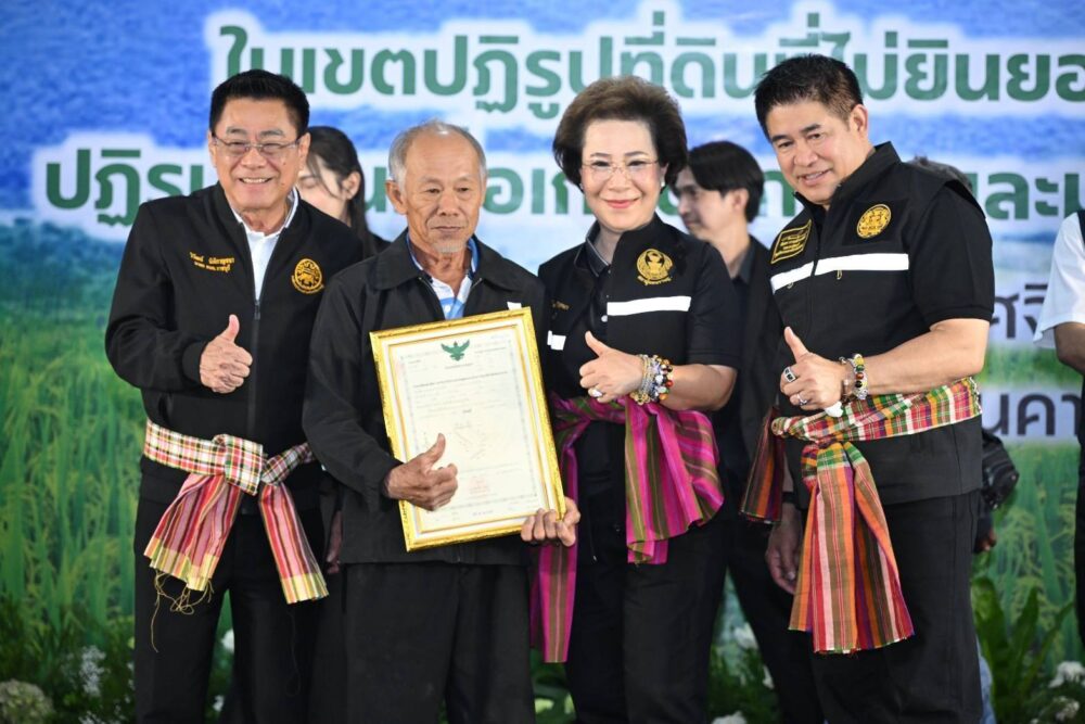 ร้อยเอก ธรรมนัส พรหมเผ่า รองนายกรัฐมนตรีและรัฐมนตรีว่าการกระทรวงเกษตรและสหกรณ์ เป็นประธานเปิดงาน Kick Off ขับเคลื่อนนโยบายการแก้ไขปัญหาผู้ครอบครองในเขตปฏิรูปที่ดินที่ไม่ยินยอม เข้าสู่กระบวนการปฏิรูปที่ดินเพื่อเกษตรกรรมและมอบโฉนดเพื่อการเกษตร โดยมี นายวิณะโรจน์ ทรัพย์ส่งสุข ปลัดกระทรวงเกษตรและสหกรณ์ นายเศรษฐเกียรติ กระจ่างวงษ์ เลขาธิการสำนักงานการปฏิรูปที่ดินเพื่อเกษตรกรรม และเจ้าหน้าที่ที่เกี่ยวข้องเข้าร่วม ณ แปลงที่ดินโครงการราชบุรีโมเดล หมูที่ 10 ตำบลรางบัว อำเภอจอมบึง จังหวัดราชบุรี พร้อมทั้งถ่ายทอดสดผ่านระบบ Zoom เพื่อเปิดโครงการฯ และพบปะพี่น้องเกษตรกรอีก 27 จังหวัด