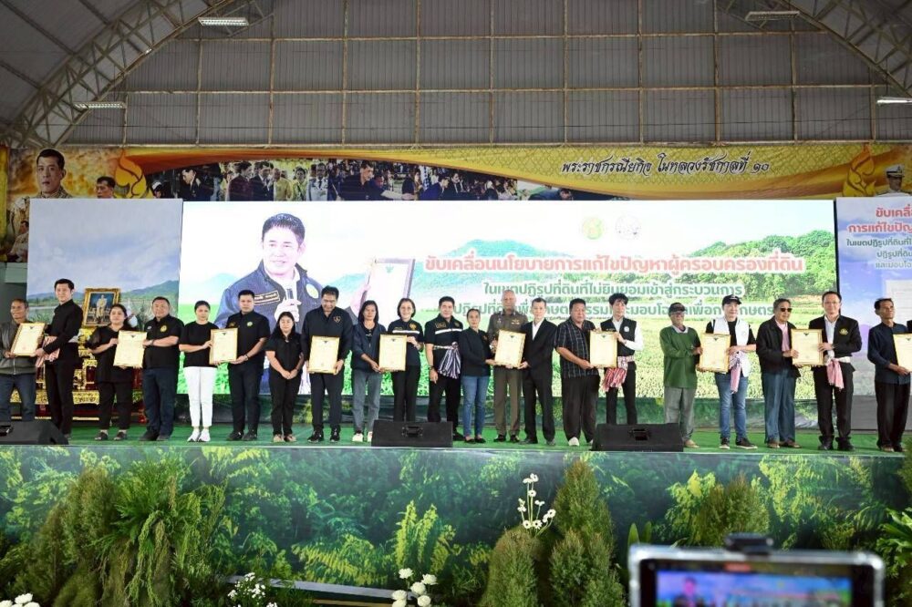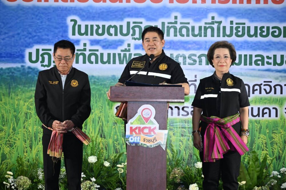 ร้อยเอก ธรรมนัส กล่าวว่า กระทรวงเกษตรและสหกรณ์ โดย สำนักงานการปฏิรูปที่ดินเพื่อเกษตรกรรม (ส.ป.ก.) ได้ดำเนินการตรวจสอบการถือครองที่ดินโดยไม่ชอบด้วยกฎหมายอย่างเข้มงวด และนำมาจัดสรรที่ดินทำกินให้แก่เกษตรกร ขณะนี้ ส.ป.ก.ราชบุรีได้ประกาศให้เกษตรกรที่มีคุณสมบัติตามเกณฑ์ยื่นคำขอรับการจัดที่ดินแล้ว ในระยะแรก เนื้อที่ 2,088 ไร่ มีผู้ยื่นคำขอ จำนวนกว่า 3,300 คำขอ อยู่ระหว่างการตรวจสอบคุณสมบัติและดำเนินการตามขั้นตอนประชาคมหมู่บ้าน และปรับสภาพพื้นที่ให้เหมาะสมกับการเกษตร คาดว่าจะสามารถจัดที่ดินให้กับเกษตรกรจำนวน 152 ราย เนื้อที่ 1,520 ไร่ ทั้งนี้ เกษตรกรจะได้รับสิทธิการเช่าที่ดิน ในอัตราไร่ละ 100 บาทต่อปี