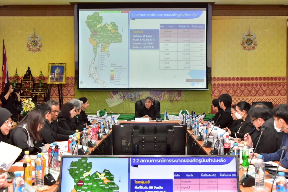 ทั้งนี้ ที่ประชุมได้รับทราบสถานการณ์ระบาดของโรคใบด่างมันสำปะหลัง ซึ่งพบใน 37 จังหวัด จากพื้นที่ปลูก 55 จังหวัด คิดเป็นพื้นที่ระบาดกว่า 1.1 ล้านไร่ หรือประมาณร้อยละ 13 ของพื้นที่ปลูกทั้งหมด จึงจำเป็นต้องยกระดับการใช้พันธุ์สะอาดและพันธุ์ต้านทาน เป็นเครื่องมือหลักควบคู่ไปกับมาตรการอารักขาพืชอื่น ๆ