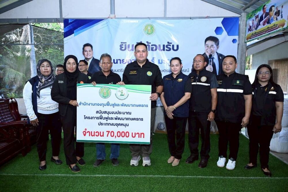 อีกทั้งยังเป็นการขับเคลื่อนโครงการเกษตรแปลงใหญ่ด้านปศุสัตว์อย่างมีประสิทธิภาพ นอกจากนี้วิสาหกิจดังกล่าวได้ผ่านการรับรองโรงฆ่าแพะฮาลาลที่ดำเนินงานตามหลักศาสนาอิสลาม ซึ่งเป็นการเพิ่มมูลค่าสินค้าและช่วยสร้างความเชื่อมั่นด้านมาตรฐานฮาลาลและความปลอดภัยของอาหารให้กับชาวมุสลิมและผู้บริโภค โอกาสนี้ นายอามินทร์ ได้มอบปัจจัยการผลิต เวชภัณฑ์สำหรับดูแลสุขภาพสัตว์ และแร่ธาตุอาหารให้แก่เกษตรกรที่มาร่วมงาน เพื่อสนับสนุนการลดต้นทุนในการเลี้ยงสัตว์ และส่งเสริมการพัฒนาฟาร์มให้ได้มาตรฐาน