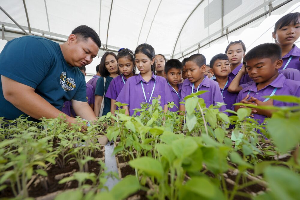 โดยกิจกรรมในครั้งนี้แบ่งออกเป็น 3 ฐาน เริ่มต้นที่ฐานกิจกรรมที่ 1 “แนะนำศูนย์เกษตรเจียไต๋” ซึ่งน้องๆ นักเรียนได้เปิดโลกเกษตรสมัยใหม่ เรียนรู้ความสำคัญของอาชีพเกษตรกร พร้อมทั้งเกิดความภาคภูมิใจในอาชีพของพ่อแม่ผู้ อีกทั้งน้องๆ และพี่ๆ เจียไต๋อาสายังได้ชมสาธิตการบินโดรนเกษตรไร้คนขับ จาก XAG Thailand ช่วยให้เห็นภาพการทำงานของเทคโนโลยีที่เข้ามายกระดับภาคการเกษตร และน้องๆ ยังได้รู้จักเจียไต๋มากยิ่งขึ้น