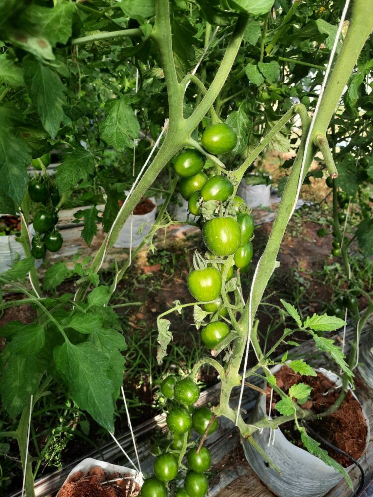 นิตยา บอกว่า เธอปลูกมะเขือเทศมาตั้งแต่ต้น ล่าสุดหลังจากที่ร่วมโครงการเพาะดี กินดี ได้รับใบรับรองมาตรฐาน GAP เป็นที่เรียบร้อยแล้ว ถือใบเบิกทางสำคัญในการเพิ่มโอกาสทางการตลาด ตอนนี้เราปลูกมะเขือเทศเชอรี่หลากสี สายพันธุ์พรีเมียมอย่าง ‘มันเดย์’ (Monday) และ ‘ชูการ์มูน’ (Sugarmoon) ที่ต้องใช้ต้นทุนสูง เพราะเมล็ดพันธุ์เฉลี่ยราคา 27–30 บาทต่อเมล็ด