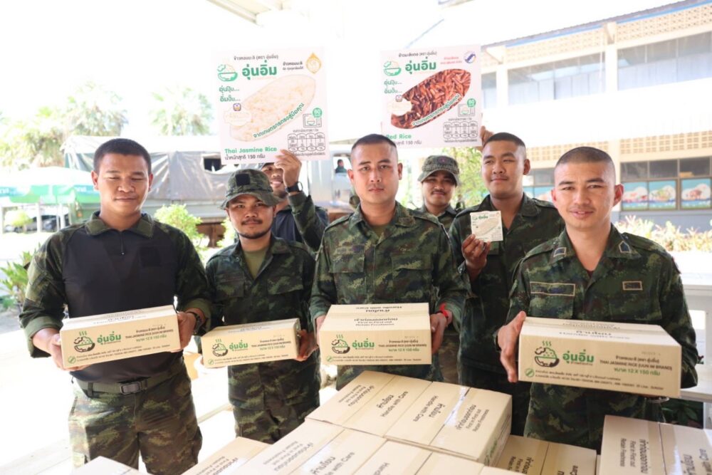 เพื่อให้กำลังใจและมอบสิ่งของจำเป็นเบื้องต้นให้แก่ประชาชนในศูนย์อพยพ เจ้าหน้าที่ทหาร และอาสาสมัคร อาทิ ผงซักฟอก ยาสีฟัน ยาสระผม นม น้ำดื่ม และข้าวพร้อมทาน ตราอุ่นอิ่ม ทั้งข้าวหอมมะลิ ข้าวกล้องหอมมะลิ และข้าวไรซ์เบอร์รี ที่สามารถรับประทานได้ทันที สะดวก สะอาด ปลอดภัย พกพาง่าย โดยไม่ต้องอุ่น และสามารถเก็บรักษาได้ในอุณหภูมิห้องนานถึง18 เดือน จำนวน 6,000 ถ้วย เพื่อบรรเทาความเดือดร้อน รวมถึงได้มอบเงินสมทบทุนช่วยเหลือเพื่อซ่อมแซมที่อยู่อาศัยให้กับกลุ่มลูกค้าที่บ้านพักเสียหายจากเหตุการณ์ดังกล่าว