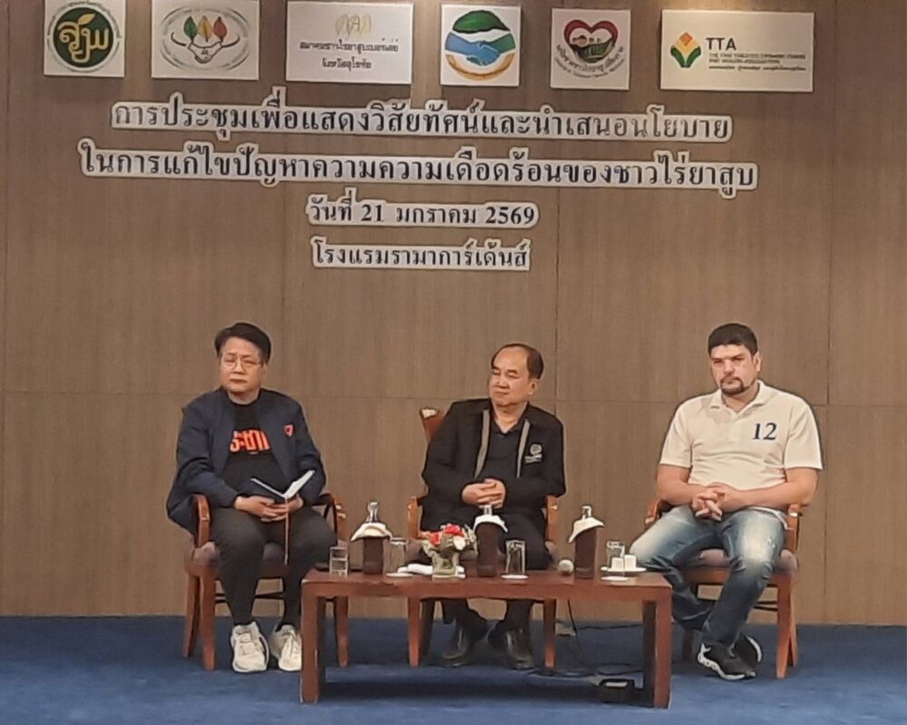 วันที่ 21 ,มกราคม 2569 เครือข่ายชาวไร่ยาสูบแห่งประเทศไทย ดิเบต 3 พรรคการเมือง โชว์วิสัยทัศน์และนโยบายแก้ปัญหาหนักอกชาวไร่ยาสูบ-แรงงานในไร่-ร้านโชห่วย และผู้มีส่วนเกี่ยวข้องในอุตสาหกรรมกว่า 6 แสนคนทั่วประเทศอย่างไร พร้อมฝากโจทย์ใหญ่ ขอทุกพรรคช่วยหาทางออก สร้างรายได้ให้ชาวไร่ สนับสนุนนวัตกรรมยาสูบที่ทันสมัย และปราบปรามบุหรี่เถื่อนให้หมดสิ้น