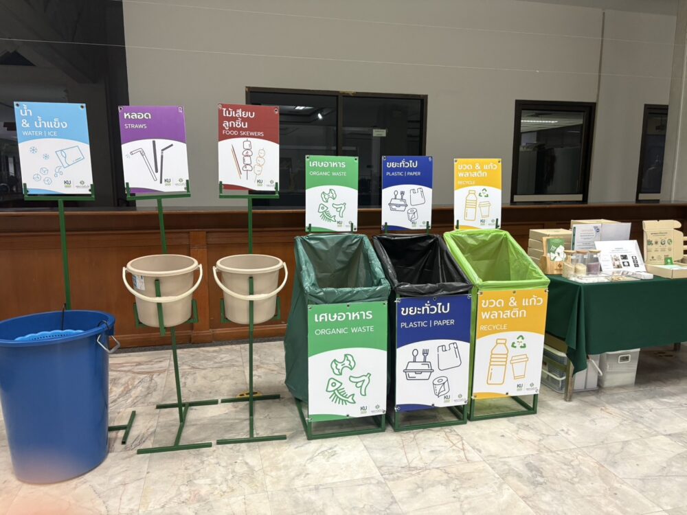 ในปีนี้ มหาวิทยาลัยเกษตรศาสตร์ยังให้ความสำคัญกับการจัดการสิ่งแวดล้อมอย่างเป็นรูปธรรม โดยนำแนวคิด “การจัดการขยะตั้งแต่ต้นทาง” มาใช้ภายในงานเป็นครั้งแรกด้วยการใช้ถุงขยะรักษ์โลกจากการสนับสนุนของบริษัทแอดวานซ์ไบโอ ผู้นำด้านนวัตกรรมพลาสติกย่อยสลายได้ของประเทศ พร้อมจัดจุดคัดแยกขยะจำนวน 15 จุด และจุดทิ้งขยะคัดแยกด้วยตนเองอีก 10 จุด ช่วยลดผลกระทบต่อสิ่งแวดล้อมและสะท้อนการจัดงานอย่างรับผิดชอบต่อสังคม