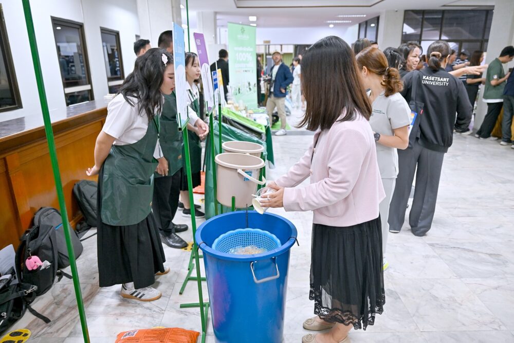 อีกหนึ่งมิติสำคัญของแคมเปญ “แยกกู้ (KU) โลก” คือการเปิดพื้นที่ให้นิสิตได้มีบทบาทเชิงรุกในฐานะนิสิตจิตอาสาประจำจุดคัดแยกขยะ ทำหน้าที่ให้คำแนะนำ สื่อสาร และสร้างความเข้าใจแก่ผู้เข้าร่วมงาน เพื่อเสริมสร้างอุปนิสัยการคัดแยกขยะอย่างถูกต้องในชีวิตประจำวัน