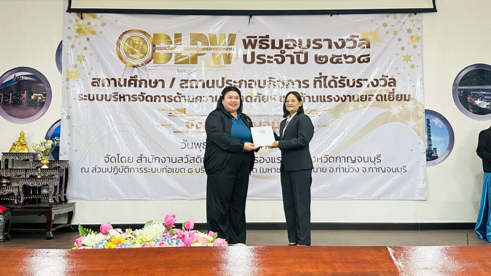 บริษัท เจียไต๋ จำกัด (สถานีวิจัยกาญจนบุรี) รับมอบประกาศนียบัตรมาตรฐานการป้องกันและแก้ไขปัญหายาเสพติดในสถานประกอบกิจการ (มยส.) ประจำปี 2568 จากกรมสวัสดิการและคุ้มครองแรงงาน กระทรวงแรงงาน ณ ศูนย์ปฏิบัติการระบบท่อส่งก๊าซเขต 8 (ปตท.) จังหวัดกาญจนบุรี เมื่อเร็วๆ นี้