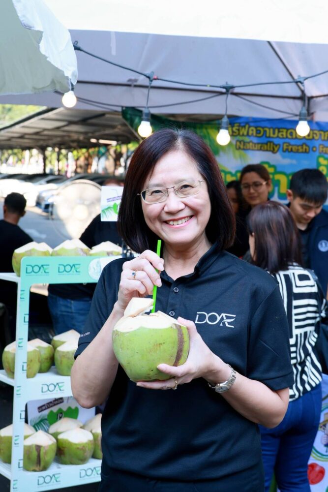 รวมถึงการจัดโปรโมชั่นพิเศษอย่างต่อเนื่อง จำหน่ายมะพร้าวน้ำหอมในราคาพิเศษ เพื่อจูงใจให้ประชาชนร่วมจับจ่ายใช้สอย ซึ่งได้รับความสนใจจากประชาชนและผู้เข้าร่วมงานเป็นจำนวนมาก ส่งผลให้มียอดจำหน่ายมะพร้าวน้ำหอมเฉลี่ยวันละกว่า 2 ตัน สะท้อนถึงความนิยมและความเชื่อมั่นของผู้บริโภคที่มีต่อมะพร้าวน้ำหอมไทย