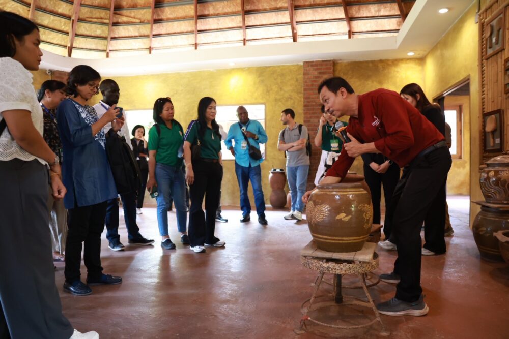 จากนั้น เดินทางไปยังร้านโอ่งข้าวโอ่งน้ำ จังหวัดราชบุรี หรือโครงการเรื่องของโอ่ง – Pottery Legend) ที่ประกอบธุรกิจร้านอาหาร คาเฟ่ และศูนย์การเรียนรู้เรื่องโอ่งมังกรที่มีชื่อเสียง โดดเด่นด้วยอาหารไทยฟิวชั่น เมนูเด็ดเช่น ไก่อบโอ่งข้าวเหนียวมะม่วง เสิร์ฟในภาชนะโอ่งจิ๋ว โดยใช้ภูมิปัญญาท้องถิ่นควบคู่กับการพัฒนารูปแบบผลิตภัณฑ์และบรรจุภัณฑ์ให้ตอบโจทย์ตลาดยุคใหม่ สร้างอัตลักษณ์สินค้าเกษตรชุมชน และช่วยยกระดับรายได้ให้กับเกษตรกรในพื้นที่อย่างเป็นรูปธรรม