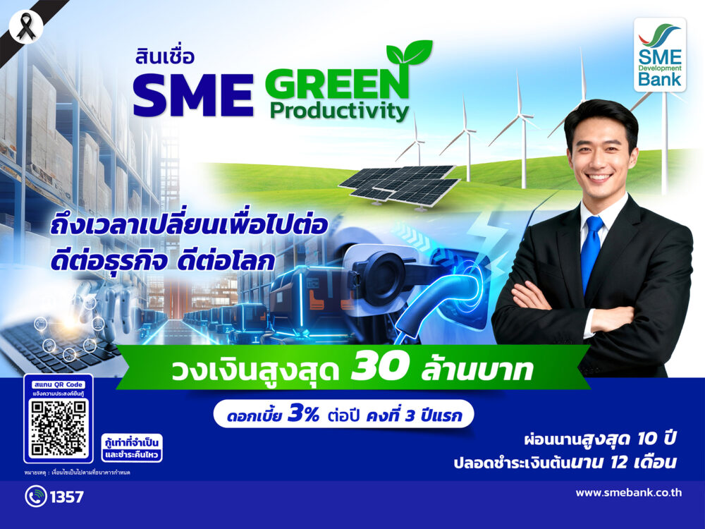 ข่าวดี! ครม.ไฟเขียว SME D Bank ขยายวงเงินสินเชื่อ SME Green Productivity สูงสุดถึง 30 ล้านบาท หนุนเอสเอ็มอีเข้าถึงแหล่งทุนดอกเบี้ยต่ำ 3%ต่อปี
