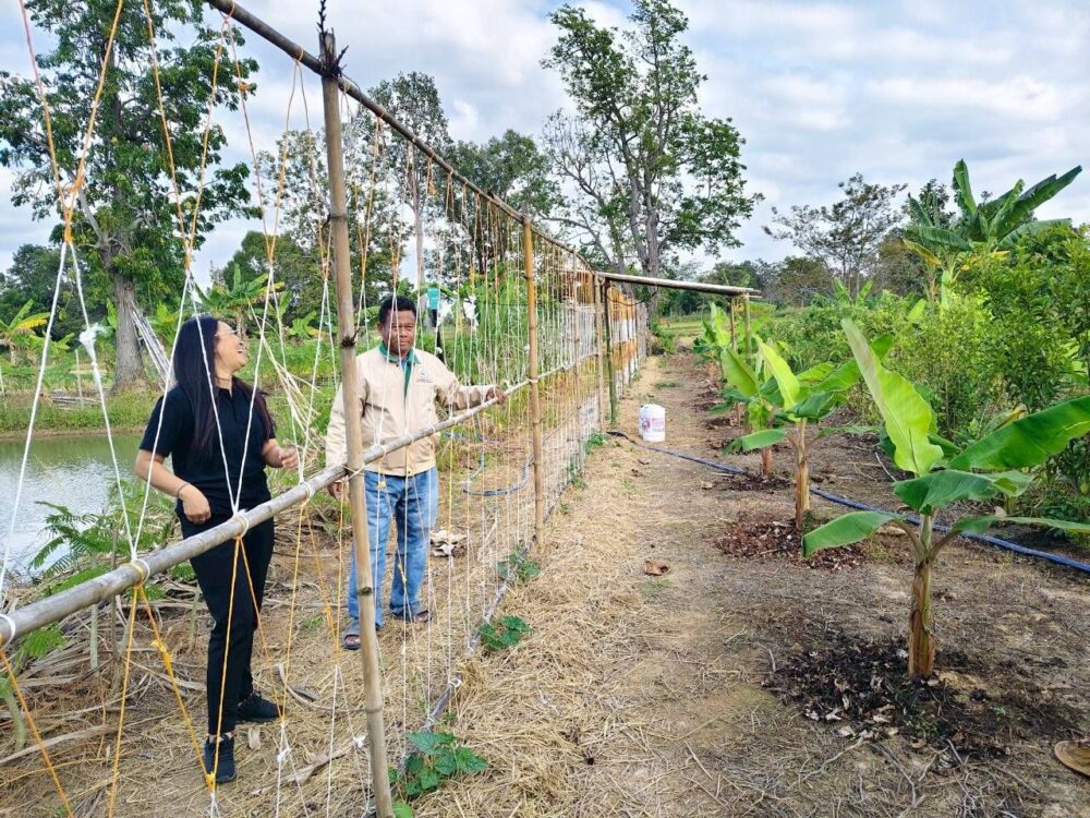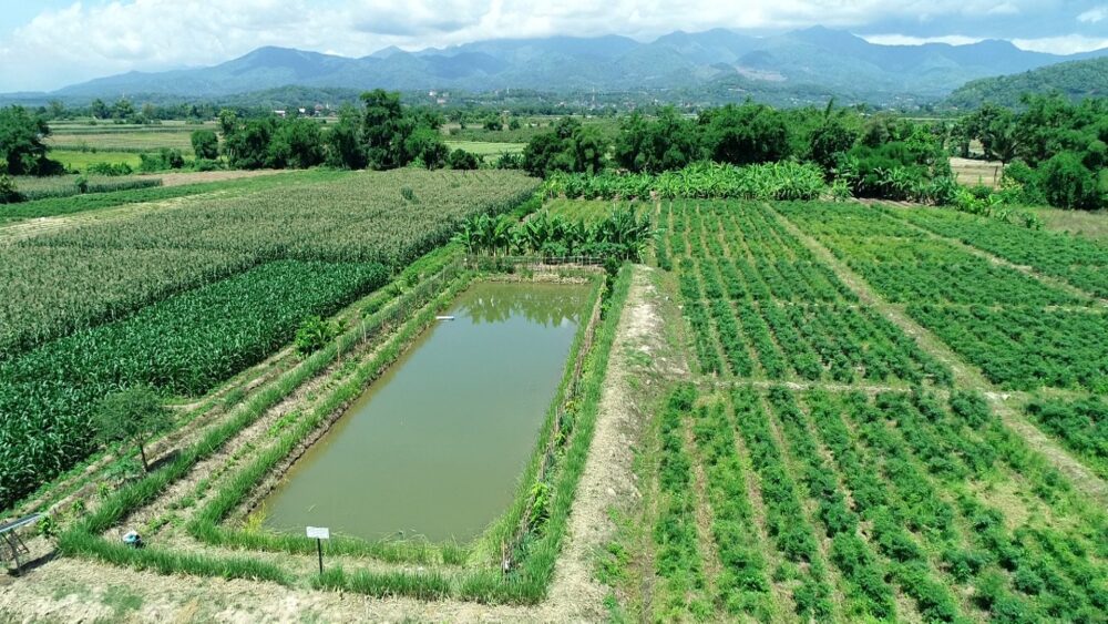 รวมถึงการใช้ประโยชน์พื้นที่โดยรอบสระน้ำเน้นระบบเกษตรผสมผสาน มีการจัดสรรพื้นที่รอบสระ สำหรับปลูกไม้ผล พืชผักสวนครัว กล้วย อ้อย ข่า หรือไม้ยืนต้น รวมถึงการเลี้ยงสัตว์ เช่น โคขุน ไก่ไข่ และปลา โดยพื้นที่คันบ่อใช้ปลูกพืชระยะสั้นสร้างรายได้หมุนเวียน ขณะที่ไม้ผลและไม้ยืนต้นสร้างรายได้ระยะยาว ช่วยลดความเสี่ยงจากการปลูกพืชเชิงเดี่ยว และเพิ่มความมั่นคงทางอาหารในครัวเรือน อาหารหลายรายการสามารถผลิตได้เอง สามารถลดรายจ่ายประจำวัน
