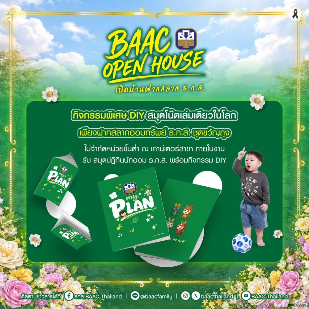 ในโอกาสนี้ ขอเชิญชวนลูกค้า ธ.ก.ส. และผู้ที่สนใจมาร่วมกิจกรรม BAAC Open House เปิดบ้านฝาก