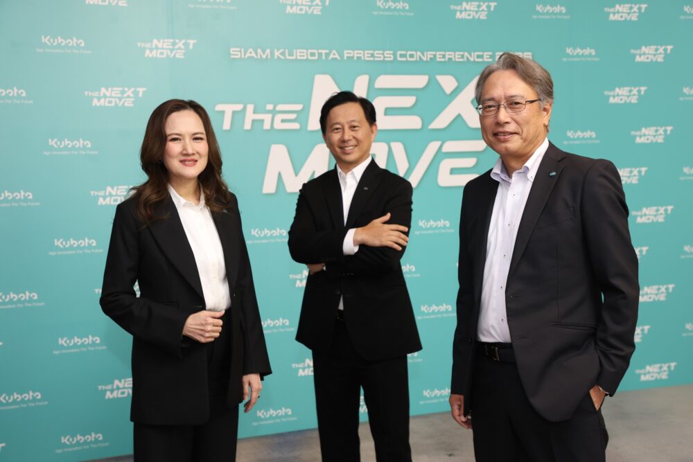 วันที่ 9 มีนาคม 2569 – บริษัทสยามคูโบต้าคอร์ปอเรชั่น จำกัด นำโดย นายคาซึโนริ ทานิ กรรมการผู้จัดการใหญ่ (ขวา) นางวราภรณ์ โอสถาพันธุ์ กรรมการรองผู้จัดการใหญ่อาวุโส (ซ้าย) และ นายปุณนะ วงศ์ธนาศิริกุล ผู้ช่วยกรรมการผู้จัดการใหญ่ ผู้จัดการทั่วไป สายงานขาย การตลาดและบริการ (กลาง) ยกทัพผู้บริหารแถลงข่าว “The Next Move SIAM KUBOTA PRESS CONFERENCE 2026” ประกาศโร้ดแมปปี 2569ตั้งเป้าเติบโต 62,000 ล้านบาท ตอกย้ำความเป็นผู้นำด้านการผลิตเครื่องจักรกลการเกษตรในภูมิภาคอาเซียน พร้อมเดินหน้าเป็น “Global Major Brand”