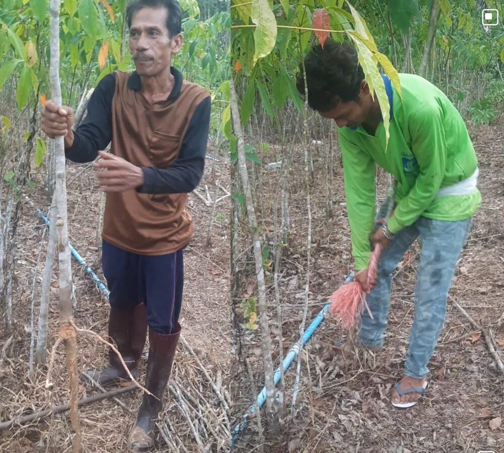 ” ลุงขำ” หรือ นายขำ อนุชิตศิริภัทรา เจ้าของพันธุ์ยาง KT 311 อำเภอปะเหลียน จังหวัดตรัง บอกว่า ภูมิปัญญาท้องถิ่นที่ว่านี้ เกิดมาจากที่ชาวบ้านมีผ้าขาวม้ารัดที่เอวและลองพันลำต้นของต้นกล้ายางและใช้แรงจากที่เอวดึงออกมา พบว่าถอนได้ง่ายขึ้น จึงมาดัดแปลงทำเป็นอุปกรณ์ถอนต้นกล้ายางพารา (ชมดู จะจะ ให้เห็นชัดๆระหว่าง ใช้นวัตกรรมจากอำมาเลเซีย กับภูมิปัญญาของไทยครับ!!