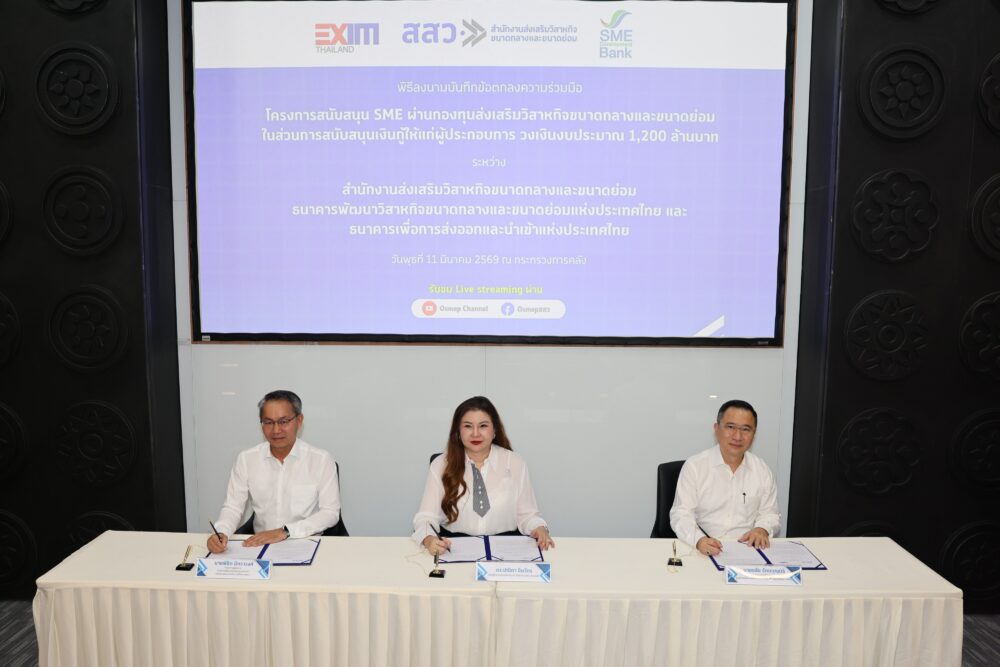 SME D Bank ร่วม สสว. – EXIM BANK เปิดตัวโครงการสินเชื่อกองทุน 1,200 ลบ. ดอกเบี้ยพิเศษ 1% ต่อปี ติดปีกเอสเอ็มอียกระดับเพิ่มขีดความสามารถการแข่งขัน