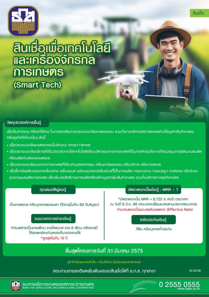 ธ.ก.ส. ขานรับนโยบายประหยัดพลังงานตามมติครม. หนุนสินเชื่ออัตราดอกเบี้ยพิเศษเพื่อการประหยัดพลังงานในภาคการเกษตรและลดผลกระทบต่อความมั่นคงทางพลังงานของประเทศ ผ่านสินเชื่อสินเชื่อเพื่อเทคโนโลยีและเครื่องจักรกลการเกษตร (Smart Tech) และสินเชื่อ BCG Model เพื่อช่วยเกษตรกรลดต้นทุนและยกระดับการผลิตโดยใช้พลังงานสะอาดหรือพลังงานทดแทน พร้อมจัดมาตรการประหยัดพลังงานภายในองค์กร เพื่อลดการใช้พลังงานที่ไม่จำเป็น รวมถึงร่วมเป็นส่วนหนึ่งในการเสริมความมั่นคงทางพลังงาน และขับเคลื่อนองค์กรตามแนวทางการพัฒนาสู่ความยั่งยืน (ESG) อย่างเป็นรูปธรรม