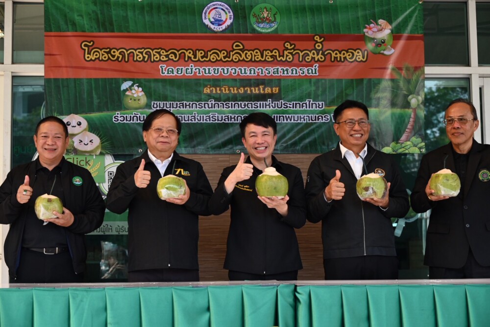 “ในส่วนของงานวันนี้ เราจะ Kick Off ปล่อยคาราวานมะพร้าวน้ำหอมคุณภาพจากสหกรณ์การเกษตร เพื่อการตลาดลูกค้า ธ.ก.ส.ราชบุรี จำกัด จำนวน 3,680 ลูก ไปสู่ผู้บริโภคในพื้นที่กรุงเทพมหานครและปริมณฑล ผ่านเครือข่ายสหกรณ์ ได้แก่ สหกรณ์ออมทรัพย์การบินกรุงเทพ, สหกรณ์ออมทรัพย์มหาวิทยาลัยเกษตรศาสตร์ , ร้านสหกรณ์กรุงเทพฯธนาคารอาคารสงเคราะห์ , สำนักงานตรวจบัญชีสหกรณ์กรุงเทพมหานคร พื้นที่ 2 , สำนักงานส่งเสริมสหกรณ์กรุงเทพมหานครพื้นที่ 2 , สหกรณ์ออมทรัพย์นิด้า, สหกรณ์บริการพนักงานในเครือยูนิลิเวอร์ และสำนักงบประมาณ