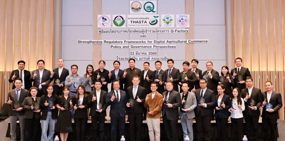 กรมวิชาการเกษตรจัดเวทีใหญ่ ถกกำกับดูแล “ปัจจัยการผลิตทางการเกษตรออนไลน์” เน้น 5 มิติ “การปรับปรุงกฎหมายให้ทันสมัย- การป้องปรามเชิงรุกด้วยระบบเฝ้าระวังและการวิเคราะห์ข้อมูล- การสื่อสารสร้างความตระหนักรู้ผ่านช่องทางดิจิทัล- การบังคับใช้กฎหมายอย่างมีประสิทธิภาพ -การบูรณาการความร่วมมือกับทุกภาคส่วน เพื่อสร้างระบบกำกับดูแลที่มีประสิทธิภาพและครบวงจรมุ่งสู่ Smart Regulation พร้อมมอบโล่ Q-FACTORY ยกระดับมาตรฐานผู้ประกอบการ